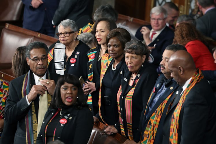 As was expected, women from the Democratic Women's Working Group (DWWG), as well as multiple men, showed up wearing all black to Donald Trump's first State of the Union (SOTU) on Jan. 30. The idea to wear black was initially proposed by Representatives Jackie Speier and Lois Frankel at the beginning of January, as a way of showing solidarity with survivors of sexual harassment and violence, and to make a statement about its presence in politics. Along with other women from the DWWG, they invited other members of Congress to join them. Here's everyone who work black to the State of the Union.