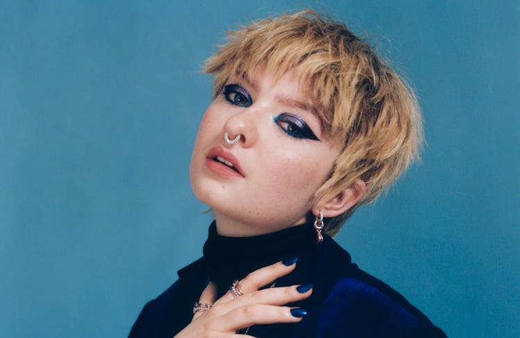 I adore jewelry. I grew up around my mom who had two different turquoise rings on each finger, and I thought that was so cool. So I kind of grew up with having jewelry be a sort of androgynous form of self-expression. Being able to do a shoot all around jewelry was really fulfilling and felt very true to me, that they just coated me head to toe in rings. They put one of the earrings in my septum ring.