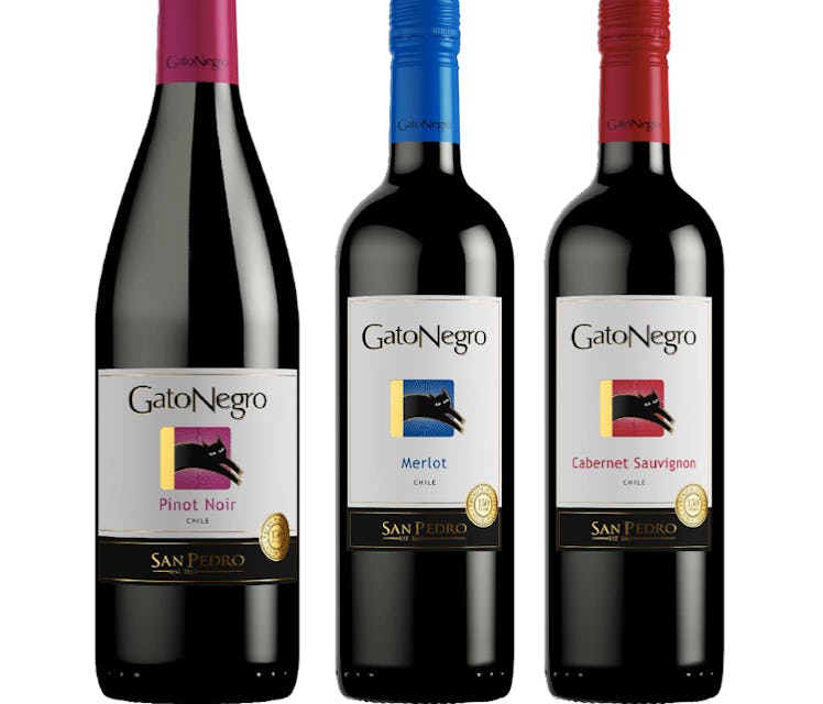 A bottle of the Gato Negro Pinot Noir tastes like a pure bottle of juicy cherries, according to the press release. Not only does it taste great with cheese, pasta, or the two of them combined, but it also pairs beautifully with all those fruity Starbursts you've been hiding under your pillow.