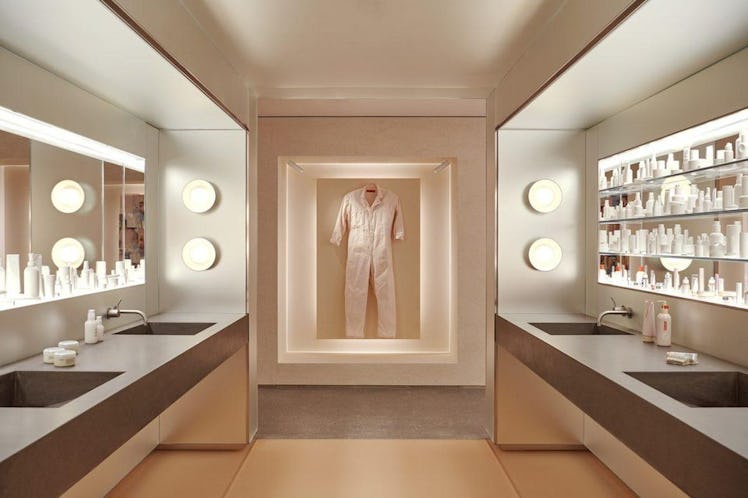 As if that wasn't enough, the store also features something called the "wet room," which has been outfitted with four slate sinks and is meant for customers to try out provided skincare samples in. Being able to test a product on your skin before you buy it? Yes, please! Also within the store is an experiential room that doubles as an homage to Glossier's best-selling Boy Brow eyebrow gel ($16, glossier.com) as well as an ace photo opp. Giant mirrors line the walls and oversized bottles (they're just for show) of the star product also hold court. Weird? Yes, but I am dying to see it!