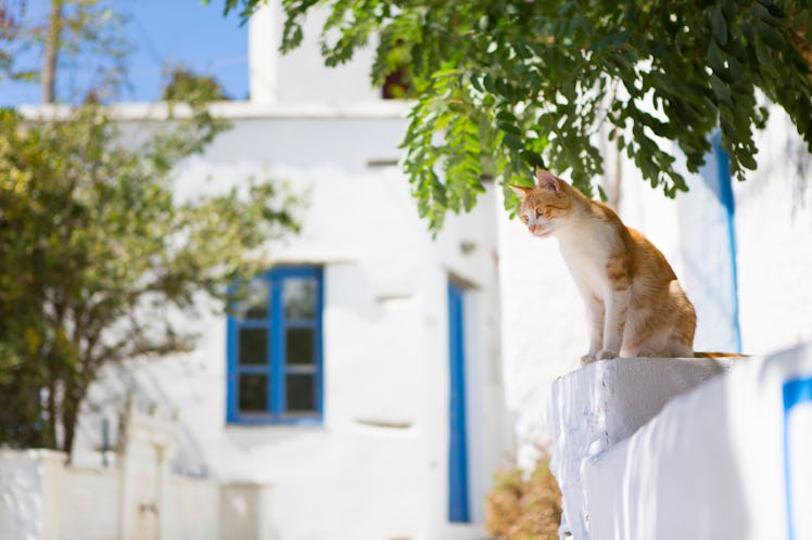 International Cat Day (Aug. 8) might have come and gone, but feline-minded individuals can extend the furry cuddles — on a Grecian island, no less — with this dream gig that'll have you packing your bags, bidding adieu to your job, and getting ready to live out your Mamma Mia! fantasies IRL. That right, you can get paid to hang out with 55 cats with God's Little People Cat Rescue's cat caretaker job, and it's a career move that you're definitely not going to want to pass up. Here's how to apply ASAP, because the Aegean sea and countless kitten-filled adventures wait for no one.