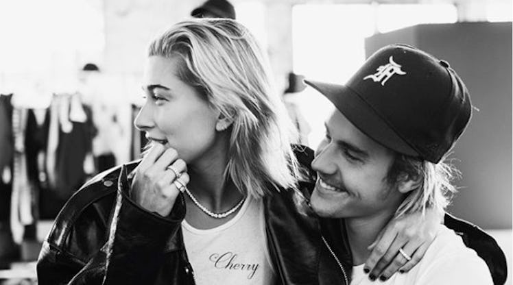 The world tilted on its axis when it was reported on July 8 that Justin Bieber and Hailey Baldwin were engaged. And the world pretty much exploded a day later when Bieber confirmed the engagement with the cutest black-and-white photos of the couple kissing, along with a long AF, gushy caption. Bieber even followed that up with an adorable throwback video of Baldwin singing (that he subsequently deleted). Apart from a little tweet from Baldwin, her side of the internet has been pretty quiet when it comes to acknowledging the engagement... until now! Hailey Baldwin's photo with Justin Bieber after getting engaged that she just posted to Instagram is so friggin' chic.