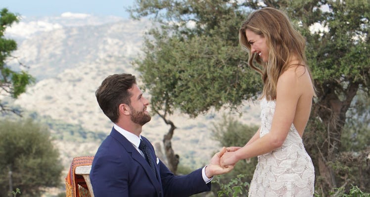 Fans might remember that Brown visibly had cold feet the day Wyatt proposed. "I am conflicted in my heart," she said the morning of the proposal, while still deciding between her finalists, Tyler Cameron and Wyatt. “I was hopeful that I would have clarity but like today I don’t know. I don’t want to not be 100 percent sure and then make the wrong decision.”