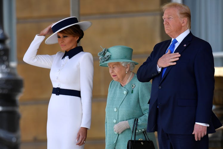Once the first family arrived at Buckingham Palace, familiar faces like Queen Elizabeth, Prince Charles, and Duchess Camilla of Cornwall greeted the Trumps and hosted a private lunch for them as a part of a welcome ceremony. However, the rest of the royal family was not in attendance, with the Duke and Duchess of Sussex and Duke and Duchess of Cambridge notably absent. Despite not making it to the welcome ceremony, Harpers Bazaar reports that Prince William and Kate Middleton will attend the the evening celebration later on Monday.