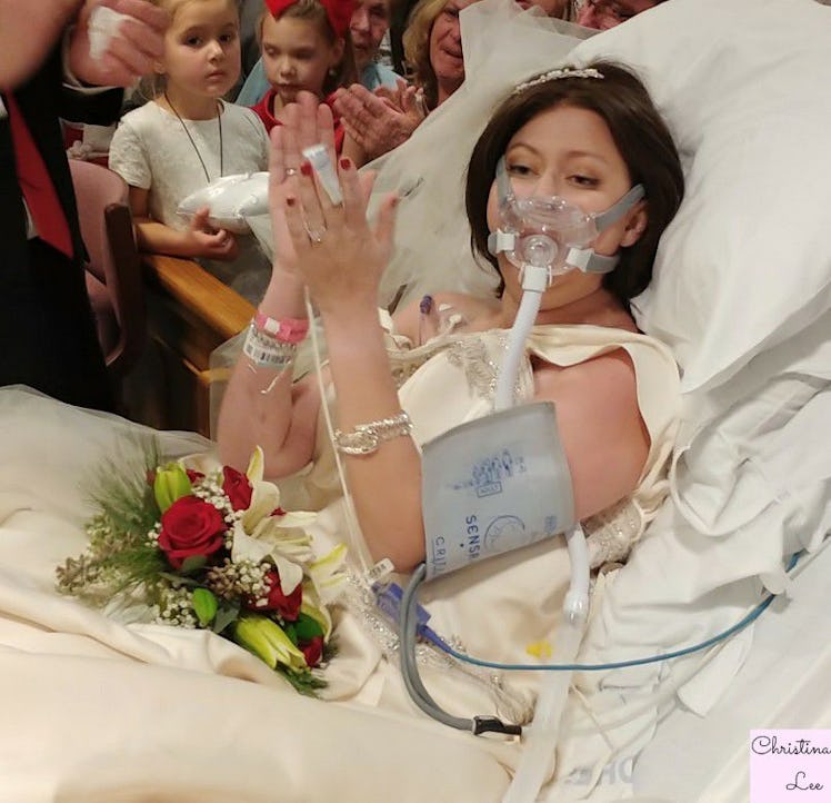 If A Walk to Remember was your favorite '90s movie, break out the tissue box, because I have a story that will put Landon and Jamie's to shame. A photo of a patient getting married in Hartford, Connecticut's St. Francis Hospital just a few days before Christmas has gone viral, and the beautiful story behind it will bring you to tears. The bride in the photo, Heather Mosher, married her husband before succumbing to cancer just 18 hours after the photo was taken.