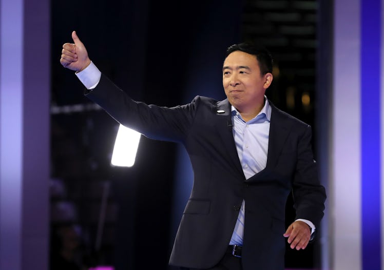 Yang has rather unexpectedly accumulated quite the following; according to Politico, he is polling ahead of more experienced politicians like New Jersey Sen. Cory Booker. As Noah pointed out, Yang has used social media and occasionally-elaborate stunts to generate more attention, and Thursday night was no different. Ahead of the debate, "#ISupportYang" was trending on Twitter, with many of Yang's supporters sharing "#MyYangStory" — videos about why they support Yang's "human-centered capitalism" approach.