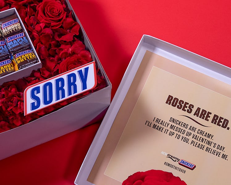 A Snickers Bouquet? OK yes kweens, definitely count me in. And if you happen to be living in the one and only New York City, you're in luck, because those in the Big Apple can enter to win a free collection of candy bars on Feb. 15. According to the press release, all you have to do to enter is tweet @SNICKERS, use the hashtag #SmoothItOver, and — of course — include the iconic chocolate bar emoji. Simple, right?