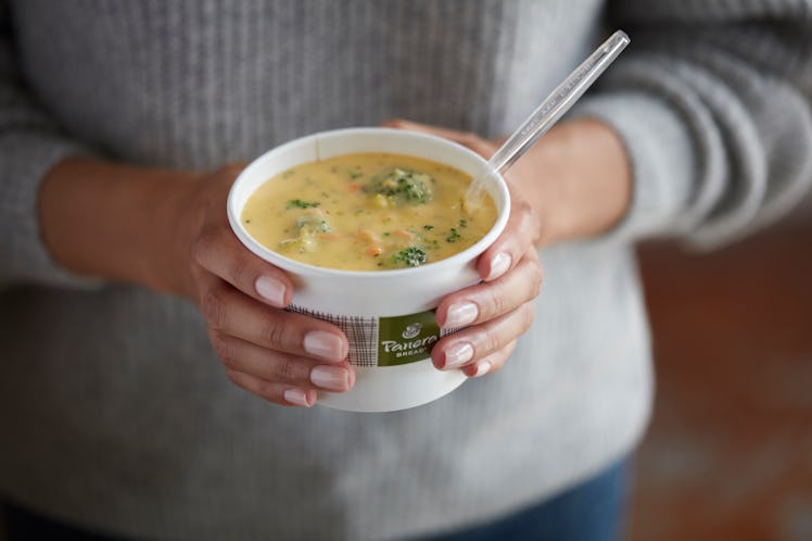 If I'm being completely honest, Panera's free soup delivery is the sole reason I bothered waking up this morning. According to a press release, on Wednesday, May 9, Panera customers can receive a free cup of soup in addition to any other menu item they order for delivery. To do so, customers must add any cup of soup to their online carts (along with their other items), and then enter the code “PANERADELIVERS." The delivery fee will still be included for the order, but that's completely fine by me — because in all honestly, there's nothing to complain about in the presence of free soup.