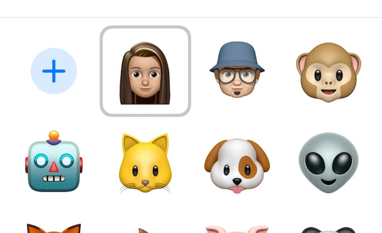 When you open up Animoji in your messages, you’ll see any Memoji you’ve already made, plus the Animoji that have already been available, like the dog, alien, fox, and pig. Click the + button and a Memoji maker will open up.