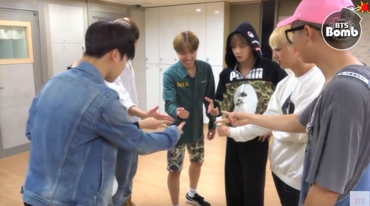 If the rules for playing RPS with more than two players still sound confusing to you (it took me a few reads until I understood, too), how about seeing it in action? Before BTS began their dance practice for "Baepsae," they played a round of Rock, Paper, Scissors to decide who would freestyle at the end of the song.
