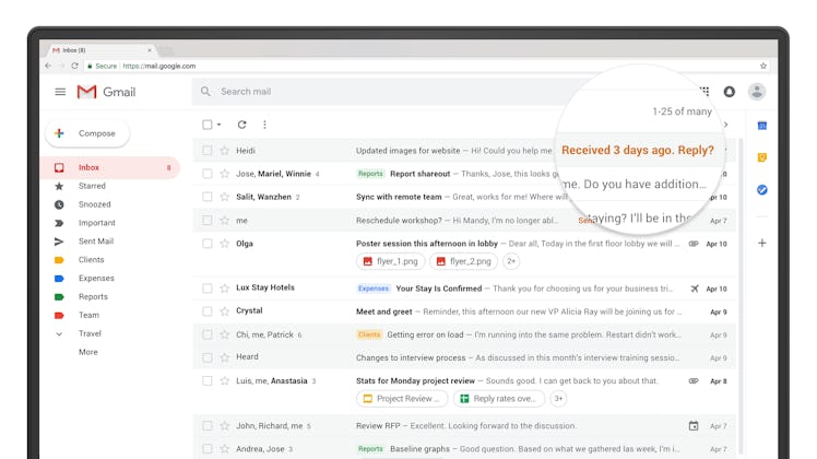The rollout of Gmail’s highly anticipated redesign will include several new features to help you save time and increase productivity while keeping your information safe from hackers. This all sounds good to me. If you are someone who forgets to respond to emails in a timely manner (let's be real, we have all been that person at least one point in our digital lives), then these new features are meant for you. Gmail is now equipped with the smarts to remind you to follow up on that email you've been ignoring for days, and even offers a Smart Reply feature that utilizes the latest in artificial intelligence to craft a response on your behalf. It's like predictive text on steroids.