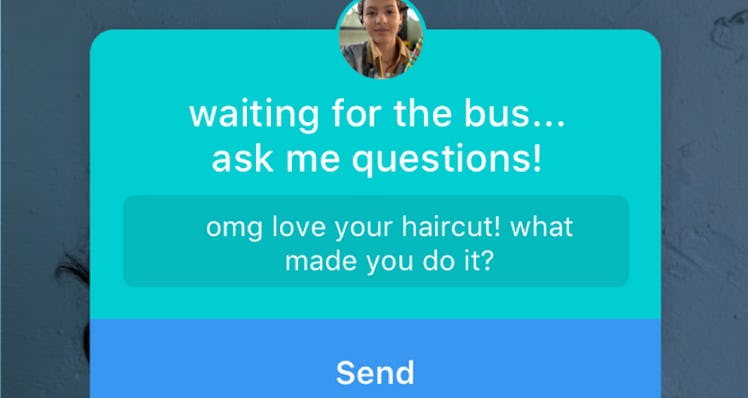 Once you've wrapped up your Story, you will see three icons in the top righthand corner. The first one should look like a smiley face. Tap the face to open up Instagram's sticker tray. This is where you would find the @mention sticker, the hashtag sticker, and the location sticker to add to your Story. Except this time, you should find the questions sticker, too. Tap to add it to your photo or video Story. Now, type out your question, and then place it wherever you want on your Instagram Story (just like you would any of the other stickers). Click the "Send To" button on the bottom lefthand corner of your screen to add it to your Story. Before you know it, the answers (aka questions) from your followers will start rolling in.