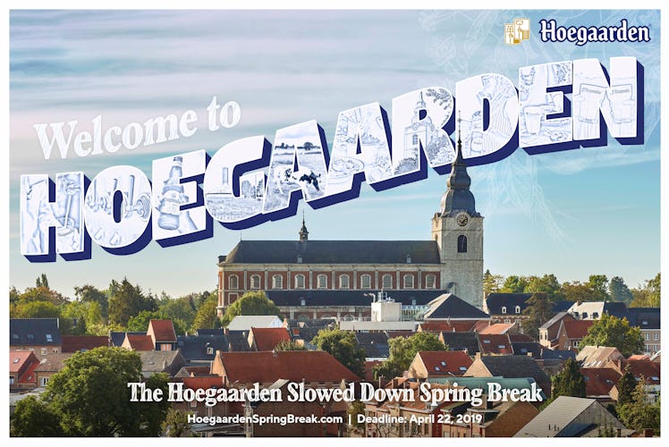 If you're a dedicated beach-going, palm tree-dwelling spring breaker, then you might be wondering what a Hoegaarden getaway would have in store. Thankfully, the company has already provided a vague (yet, appealing) trip itinerary on its website. According to Hoegaarden, those who win the spring break trip will get to spend time "finding shapes in the clouds," enjoying nature, traveling through cobblestone roads, and sipping on Hoegaarden wheat beer. Plus, the village of Hoegaarden sounds super easy-going, complete with greenery and "charming cafes."