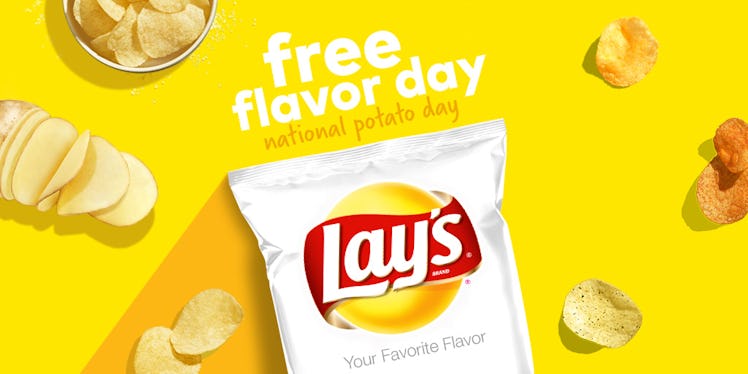 Since Sunday, Aug. 19 is National Potato Day, Lay's is giving fans the opportunity of a lifetime: a chance to win a free bag of potato chips. In honor of the beloved root vegetable, the brand is going to prompt fans via social media (on Facebook, Twitter, and Instagram), to post their favorite flavor in the comments section, according to Lay's. Five lucky AF fans on each platform will be randomly selected to receive the bag of chips that they requested. Needless to say, I will be trolling the brand's social media pages relentlessly to get my hands on Lay's most recent popular flavor: Fried Pickle With Ranch potato chips. I mean, in all honesty, it's all I want in life right now.