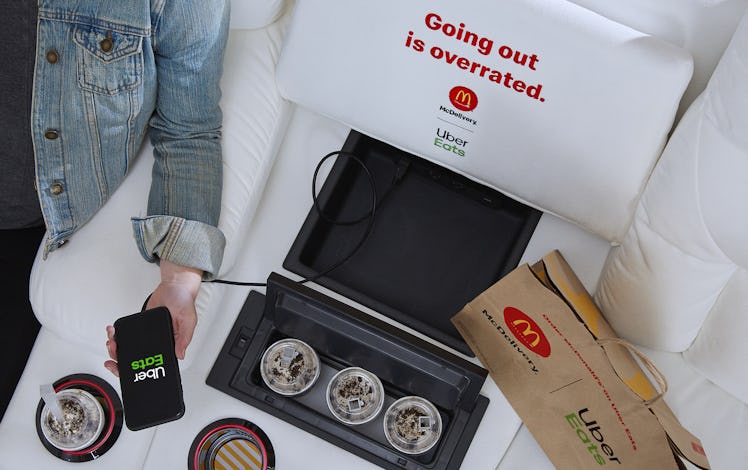 Sure, all of these built-in accommodations are important, but I can't forget about comfort. According to McDonald's, the McDelivery Couch also features adjustable seats and a McDelivery-themed blanket. Therefore, you can kick your feet up and get cozy when you're done eating your McFlurry and fries.