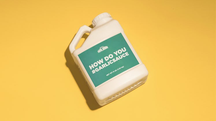 On Friday, May 11, Papa John's will officially start selling its iconic garlic sauce in XL gallon jugs for only $20 each. According to a press release, the company's garlic sauce will only be sold for a limited time online across 13 states in major cities, including Atlanta, Chicago, Cincinnati, Columbus, Dallas-Ft. Worth, Indianapolis, Los Angeles, Louisville, Nashville, and New York. If it isn't available anywhere near you, I see a road trip in your future. And yes, I'm literally high-fiving a million angels, because New York has gloriously made the list. Neighbors, get ready for my apartment to smell like a slice of heaven.