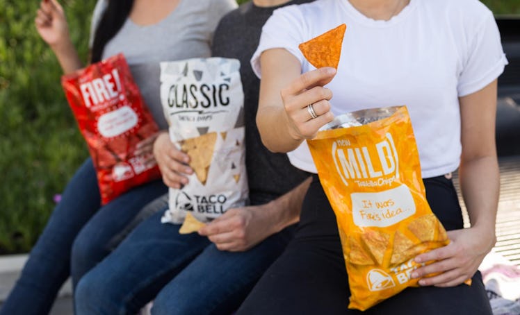 The new Taco Bell tortilla chips will come in three different flavors: Classic, Fire, and Mild. If some of the flavors sound familiar to your expert Taco Bell ears, you are not mistaken. The Fire and Mild Taco Bell tortilla chips are similar in flavor to the Taco Bell sauces that share the same name, and they'll probably pair so well with all of those Taco Bell sauces you've been hoarding in your kitchen (you're not the only one).