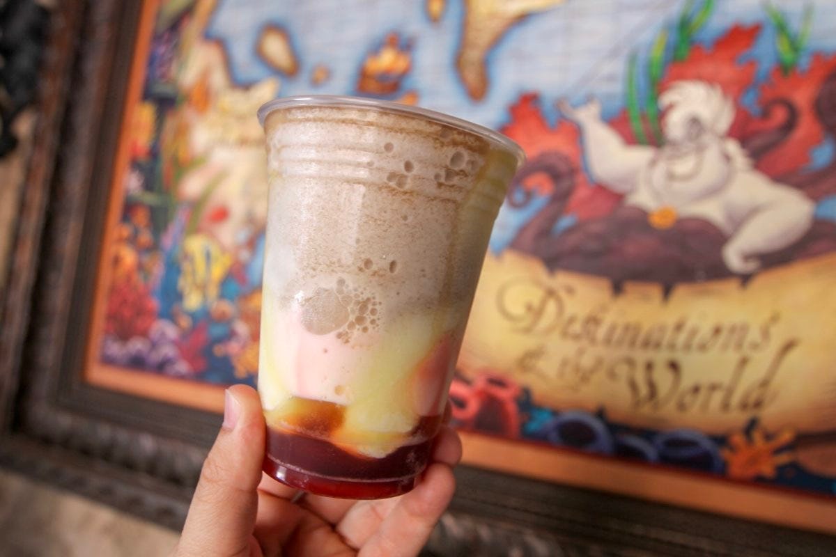The frozen drink itself looks pretty cool. In an Instagram photo of the sip posted by @wdwnt, you can see the color layers clearly delineated with a layer of foam from the Coke at the top.