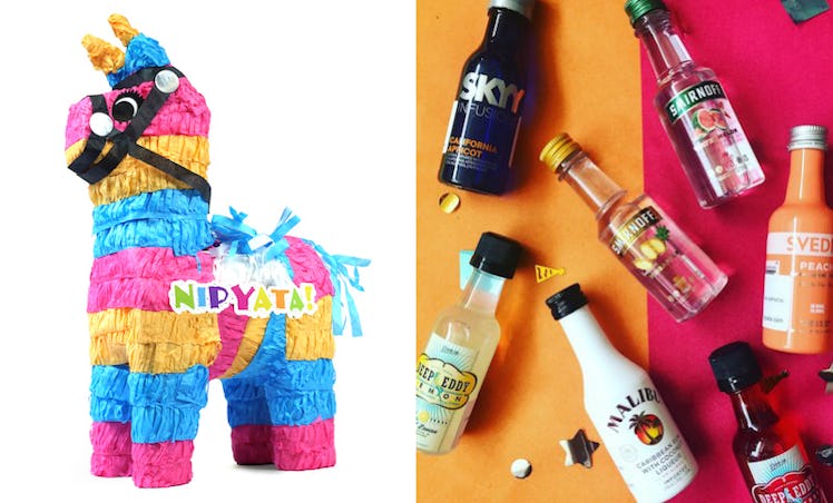 OK, if you need a moment to process the brilliance of putting mini bottles of alcohol inside of a classic piñata, I totally understand. It's what all my past parties were missing and what I pretty much need at all my future soirées.