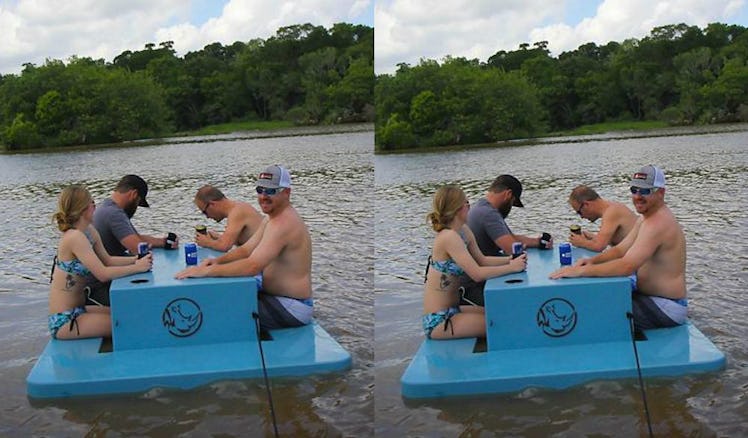 I think the best part of it all, however, is that the Floating Picnic Table can fit up to four adults comfortably, according to the Sam's Club website. Yes, you heard that loud and clear — and there's an actual cup holder for each individual person. Wine tasting on the water, anyone? And just take a gander at her beauty. She truly is an exceptional work of art.
