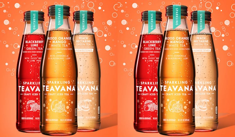On May 15, Teavana announced the expansion of its ready-to-drink (RTD) sparkling teas, and as an avid summer enthusiast, I'm beyond psyched to get my hands on each one. Although they are not all currently available at Starbucks restaurants, according to the brand, they are available at select grocery stores nationwide. You can locate all three flavors through Teavana's website, and you'll notice that joining the two original flavors — Sparkling Blackberry Lime Green Tea and Unsweetened Sparkling Peach Nectarine Green Tea — comes its latest and greatest creation, Sparkling Blood Orange Mango White Tea. If you ask me, it sounds refreshing AF.