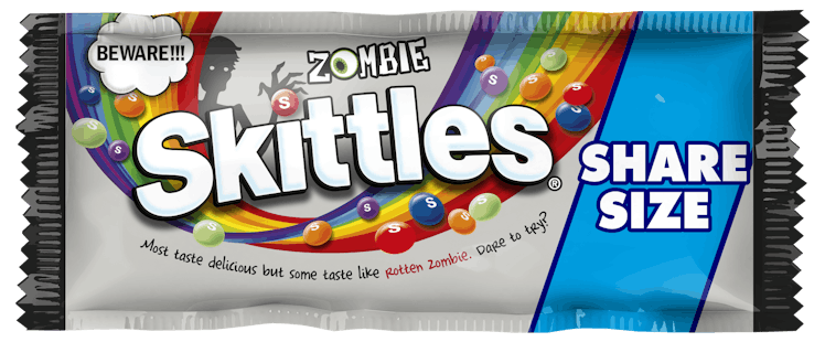 Our fans love SKITTLES not just for its delicious fruity flavors, but for their reverence and sense of humor for which the brand is known. This Halloween, we wanted to give our fans the ultimate rotten twist on the candy they know and love, challenging them to test their bravery over a bag of Zombie Skittles.