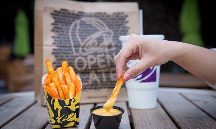 I'm not just talking ketchup here, people. These fries come with that warm, creamy cheese that anyone familiar with the Bell is all too familiar with. Wanna up your dip game? Consider mixing in one of Taco Bell's classic hot sauces, like Fire or Diablo. Oh yeah.