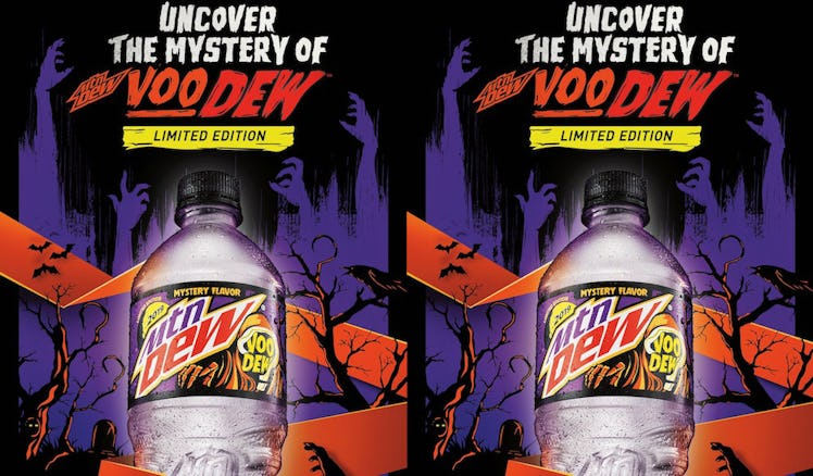 For those who aren't already familiar with the brand's new soft drink variety, let me bring you up to speed. Mountain Dew's VooDew flavor is a mysterious, milky-colored concoction, which the company sells in Halloween-themed 20-ounce bottles and 12-ounce cans. And aside from that on-fleek branding, the flavor is reportedly quite good. One fan took to Twitter to compare the taste to a blend of "cotton candy mixed with hints of candied apples," while another fan said it's more reminiscent of "creme soda with lime lollipops in it." Regardless of which one VooDew emulates more, all of this is making it sound straight-up delicious. I'm dying to try it right now.