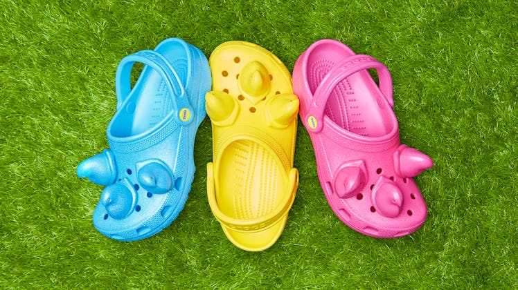 Starting with a close-up of one of the pink Peeps, Crocs has been teasing this drop since Feb. 26 on its Instagram. With captions like, “Here’s your second taste. What do you think?” the brand has kept fans on their toes. Two days later, Crocs finally released photos of the Jibbitz before revealing the entire collection on Feb. 27. Like all previous Croc collabs, this reveal was met with a certain amount of derision. As one fan commented, “I hate them. But I’m buying them.” Whether you hate them or not, check out the new Peeps x Crocs collection below.