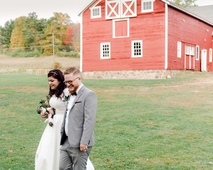Though some farm wedding venues may have all the things you would need on your special day, keep in mind there's a very real possibility they might not. So, you would probably need to incorporate that into your budget. But despite the possible extra costs and work that goes into a farm wedding (someone has to empty the portable bathrooms!), there are a lot of benefits to having one, if that's what you want. "You may have more control over what is spent on linens or silverware compared to another place," Martinson explains. "You may also have a lot more control over what is served food-wise since you aren't picking from a standard A or B menu, unless your farm venue has a caterer you have to work with." Planning a wedding at a farm can also give you countless stunning backdrops for wedding photos, and coverage from bad weather if there's a barn house.