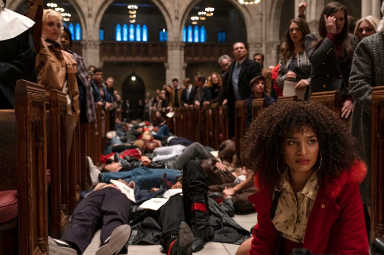 But as the 1980s ended, the group turns its attention to the Catholic Church, whose anti-gay, anti-safe sex education helped spread the fear of AIDS at that time. A mass protest in front of New York's St. Patrick's Cathedral was organized, where a few dozen brave activists marched into the middle of Sunday mass and staged a group "die-in" in front of the congregation. Pose shows the main cast as part of this group that marched inside, only to be arrested and dragged away to jail.
