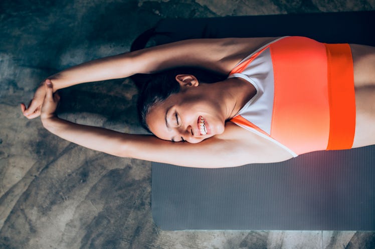 If you've ever pushed yourself through a super challenging workout, with sweat clouding your vision and your muscles begging for mercy, you've probably told yourself to "just grin and bear it" to make it to the end. Despite the cliche, it turns out you honestly may have been onto something. According to a new study published in the journal Psychology of Sport and Exercise, there's an actual psychological effect that a cheeky grin can have on your performance in the gym, or even when you're competing in a sport.