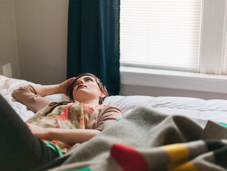 Dr. Abrams suggests practicing deep, long belly breathing exercises to ground you in the present moment. "Doing this kind of breathing can give us something to focus our mind on to calm the constant stream of thoughts and worries that we all live with day in and day out," she tells Elite Daily. "Doing five, and maybe eventually 15, minutes of this deep breathing every night before bed can help strengthen the parasympathetic nervous system, and you might find that you start taking deep breathes throughout the day during moments of stress."