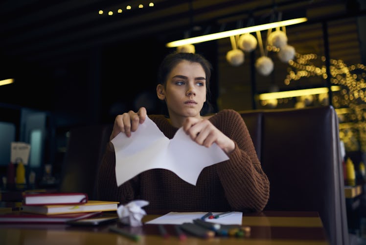 Echoing Lorelai's wise words, Stacey Kaiser, Live Happy editor at large and licensed psychotherapist, tells Elite Daily that it's super important to "give yourself time to feel your feelings." So however you choose to wallow — whether it involves crying through an entire box of Kleenex, boxing a pillow, or locking yourself in a dark room with a sad playlist on repeat — allow yourself to feel every single feeling in its entirety and don't "just bottle it up inside."