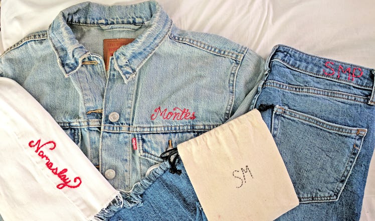 No matter what the garment is (a pair of jeans, a denim jacket, a gingham dress), if it's monogrammed with your initials, Instagram handle, or your favorite quote, it instantly feels more expensive. But taking your best closet staples to a shop for a custom design could actually cost you a pretty penny. You know what is much cheaper? A needle and some embroidery thread. And the best part is, stitching your name on a pair of jeans is actually super easy.