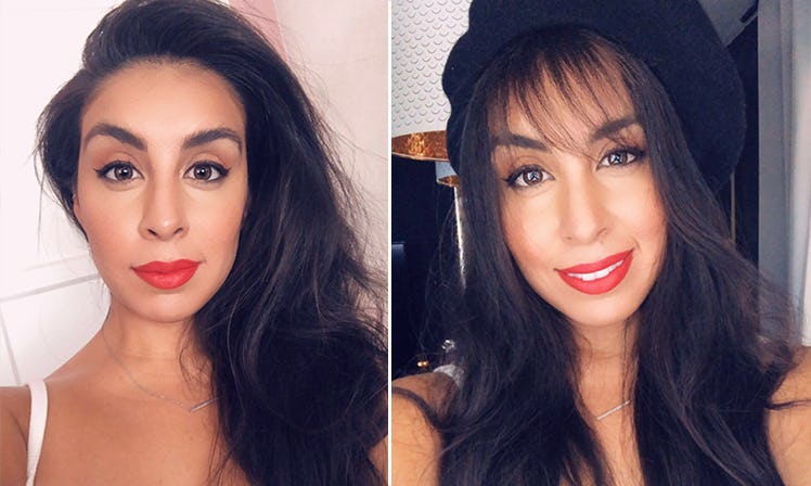 Over the years I've learned ways to get creative with my single-length, virgin hair, including faking trendy haircuts. I once even tricked everyone around me into thinking that I got a short bob. If you're like me and are too afraid to make any drastic changes, but you still crave a trendy fringe, here's how I faked those French-girl bangs that I love so much.