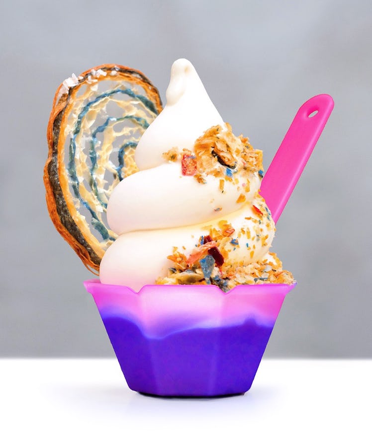 The treat was recently released by a New York bakery called Supermoon Bakehouse, which is known for its creative croissant innovations. According to the company, the salty-sweet soft serve comes peppered with dehydrated, multi-colored croissant crumbs and is topped off with a slice of croissant that's been baked not once, but twice, with extra salt, butter and sugar on it. The dessert even comes with a color-changing spoon and cup that changes with both heat and cold. (Honestly, who needs to go outside to play when you have something as entertaining and enjoyable as this???)