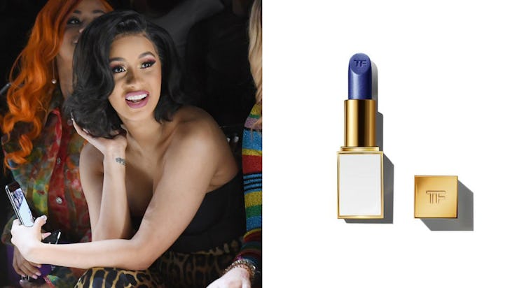 Cardi B is a woman who definitely isn't afraid to get a little bold with her looks. From rainbow wigs, to hot pink 'dos, the rapper has taken us all along for her style journey since her career has taken new heights. And now the beauty world is giving a little something back to the queen in return. On Sept. 8, the birth of Tom Ford's Cardi B lipstick was officially announced via Tom Ford Beauty's Instagram page as a part of the brand's latest Boys & Girls collection. As expected, fans went crazy for the uniquely deep blue shade; so crazy that after only one day, the lipstick completely sold out — both online and in-store (which is amazing for Cardi, but totally sucks for us) in less than two days!