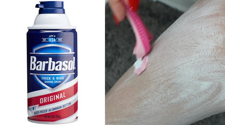 Just a word to the wise: if it's a mens shaving cream, do not use on any... super sensitive areas. Some mens shaving creams contain mint and other ingredients to create a cooling effect, which feels good on a guy's face, but won't feel good everywhere on your body. When in doubt, just shave your legs and underarms, OK?