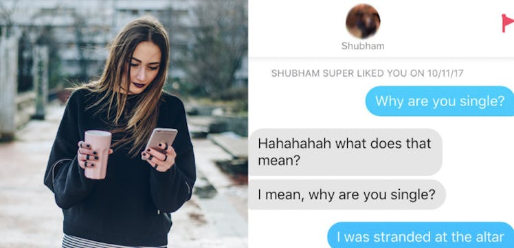 Messaging your Tinder match "hey" only gets you so far. Congrats on kicking off a conversation, but... it'll probably only lead to banter as riveting as "Hey, how are you?" or even "Sup?" So during my most recent swiping sesh, I opened every conversation with a ridiculous question — I asked all my Tinder matches why they're single. I was surprised that I actually learned a lot from people's answers.