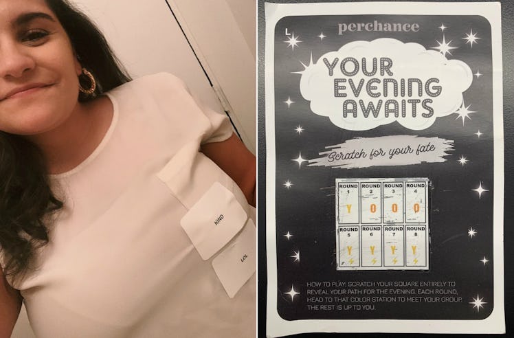 In an effort to tear myself away from my comfort zone, I said yes when Perchance invited me to a singles mixer in New York City. Perchance is a company that organizes “curated gatherings” for single people to meet, flirt, and hopefully hit it off. When I got invited to one of their gatherings for straight-identifying individuals (they host different gatherings for people of all genders and sexualities), I was a little confused. Via email, they described the event as a “magical, in-person dating experience,” which while exciting, also made me feel a little skeptical. How magical could an in-person dating experience really be?