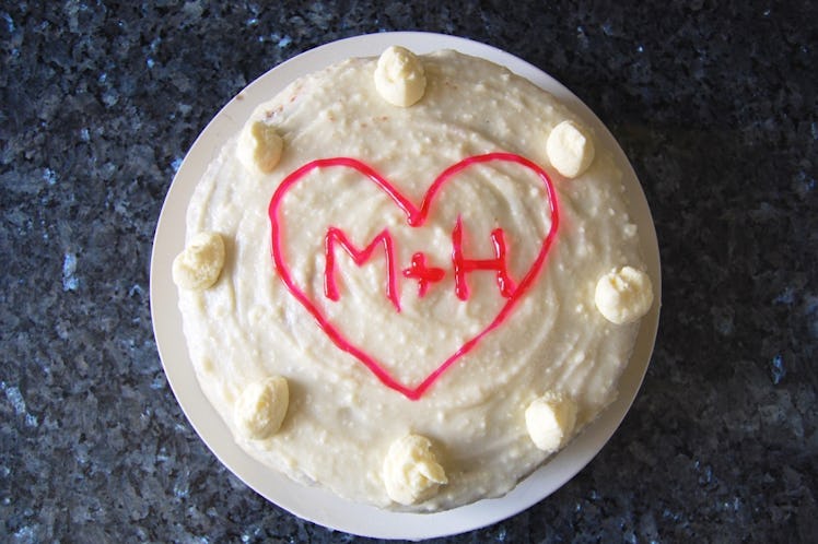 Given that after all this work I felt like my entire self-worth depended on the stupid cake, my boyfriend looked at me like a rabid animal as he took his first bite. He gave an exaggerated "mmmm!" to satisfy my royal-raddled ego, and I thought about the things we do for love. Making this ridiculous cake was a useless exercise in over-the-top displays, just as most weddings are useless exercises in over-the-top displays — and a royal wedding is especially that. Weddings are strange, outdated, and patriarchal constructions (much like the monarchy), but people do them anyways, as if to shout to the world, "I WANT TO SPEND THE REST OF MY LIFE PUTTING UP WITH THIS IDIOT'S STUPID ANTICS AND BIZARRE FAMILIAL TRADITIONS AND I WANT YOU ALL TO KNOW THAT!" which is a nice idea, really.