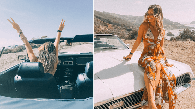 If you’ve ever driven down the Coastal Highway, you know every twist and turn is another irresistible photo opportunity for the ‘Gram. Let’s face it: You’re going to plan the perfect outfit for your road trippin’ experience. You have your movie star-esque sunnies on to slay, and are completely ready to strike a pose in the California sunshine. I’m here to tell you, all that’s missing from this situation is a classic car, which is the one spectacular prop you need to take your Instagram vacation to the next level.