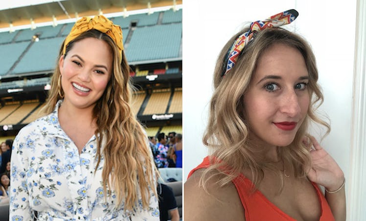 It's safe to say that the world appreciates what Chrissy Teigen has to offer. Fantastic cookbooks? Love 'em. Hilarious social media comments? All about it. Fashion advice? Oh, hell yes. The 32-year-old model seems to excel at nearly everything she does, and let me tell you, when Teigen wore a different headband every day for two weeks in August, I was inspired. I mean, let's be real: try as I might, I can't look like Chrissy Teigen. I certainly can't pull off the outfits in Chrissy Teigen's wardrobe. But headbands? Headbands I can do. So, I gathered up my favorite hair accessories, and I tried wearing a headband like Chrissy Teigen for a week, and honestly, it took a lot more effort than I initially realized — but was totally worth it.