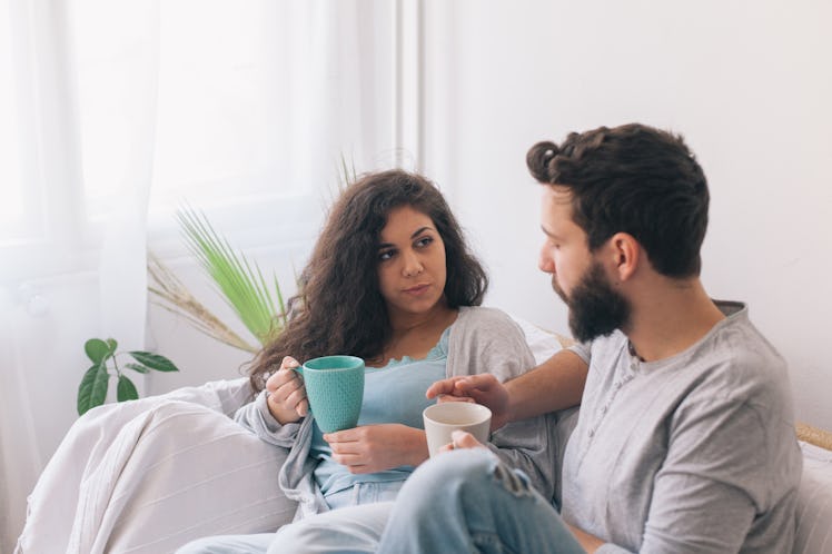 If it's pretty clear that your partner may not be thinking super rationally about the conflict, or if they're acting out of anger or being a little childish about something, Rabbi Slatkin suggests finding a mellow time to have a safe conversation to gently share your feelings. Though just listening can limit your involvement, if the issue seems to be growing, it can be helpful to tell your partner what you're observing.