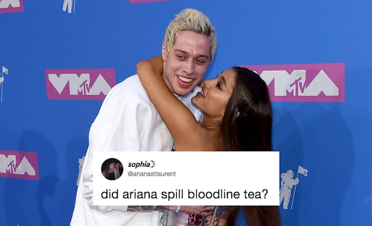 Shut the actual front door, please. This is too much. Ariana Grande already had me spinning out when she confirmed she will be dropping another album merely six months after Sweetener shattered the atmosphere. Then she went on a chill Q and A session with her Twitter fans and legitimately answered questions about her new songs! Lord help us! If you've been checking out her tracklist and wondering what each song is about, strap the F in. For my current intents and purposes, let's start with this question: Is Ariana Grande's "bloodline" about Pete Davidson? Um... I mean... the answer isn't no.