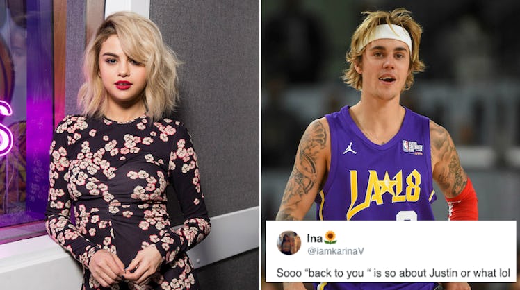 Wooo, baby! Welcome back from your "fame break," Selena Gomez! Gomez just released a new track titled "Back To You" off of the 13 Reasons Why Season 2 soundtrack, and fans are eating it up. The 25-year-old icon teased the new song at the beginning of May, letting fans know it would officially drop on May 10. Now that it's here, Selenators are swooning over the fire beat, and quickly catching onto the lyrics. Obviously, we're all wondering is "Back To You" about Justin Bieber?