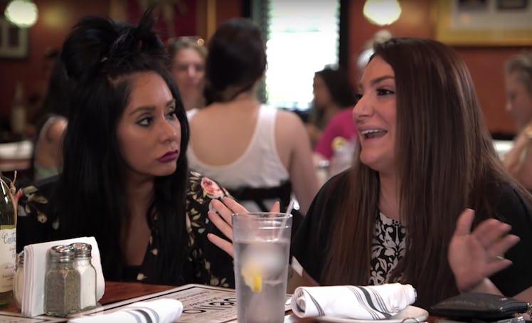 Deena actually only appeared on screen for about a minute of the two-hour-long Jersey Shore Family Vacation: Part 2 premiere on Thursday night. Before Snooki and JWoww joined the rest of the cast in Las Vegas, they met up with Deena, where she dropped the news that she is pregnant. It's a surprise to her friends, but of course, fans of the show already knew this was coming since Deena announced her pregnancy on Instagram back at the beginning of July. Deena said that since she is pregnant now, she is opting to stay home with her husband, Chris Buckner, rather than hit the clubs in Las Vegas.