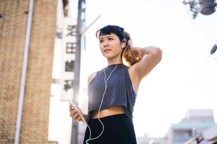 If you're looking for a little more guidance as to whether hitting the pavement will make you feel better or worse, Nadia Shaukat, associate medical director at Paradocs Worldwide Inc., suggests following what she refers to as the "above the neck" rule. "Generally speaking," she tells Elite Daily, "if you feel well enough, and symptoms are 'above the neck,' it is fine to work out, but expect not to be as strong or as fast as normal." So, for example, if you just have a runny nose, you might be totally OK to jog for a few miles. If you do decide to run while you're still sick, it's important to be careful, Shaukat says, by not only reducing the speed of your run, but also taking breaks whenever you need them.