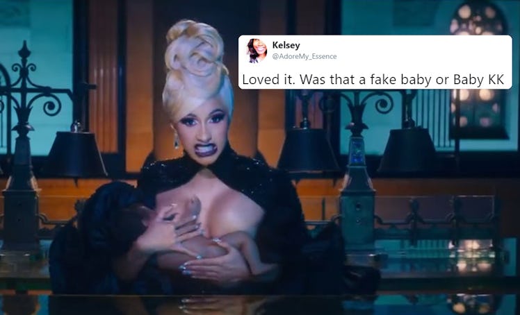 That's right, while watching the video, fans were taking in every Cardi costume (or lack thereof — because, yes, there's a setup of Cardi seated at a piano in the nude) with bated breath when, out of nowhere, Cardi pops up on screen holding a whole baby.